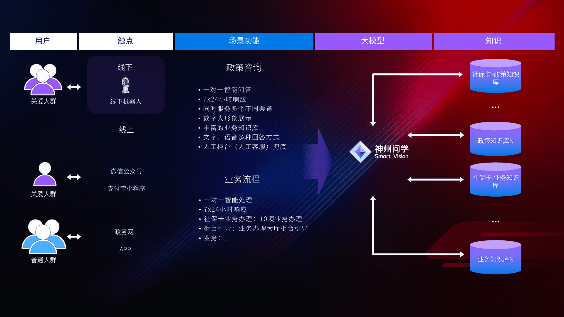 • 线上线下全覆盖:线上提供微信公众号、、、、支付宝小程序、、、、政务网、、、、app多种渠道,,与线下机器人形成完整服务体系。。。。