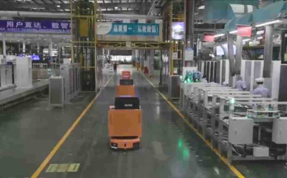为车载冰箱物流配送打造的智能解决方案,,包含产中物流通过潜伏举升AMR搬运至线边,,,产后成品物流智能仓储,,流程包含产中物流智能齐套入库,,线边安灯叫料AMR智能配送至线边,,成品入库、、、、出库,,,通过无人堆高车机器人,,智能仓储管理替代人工作业管理,,,实现更高存储、、更高效率、、、、更具柔性化的解决方案。。。